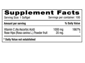Vitamin C 1000 mg Rose Hips x 100 Softgels