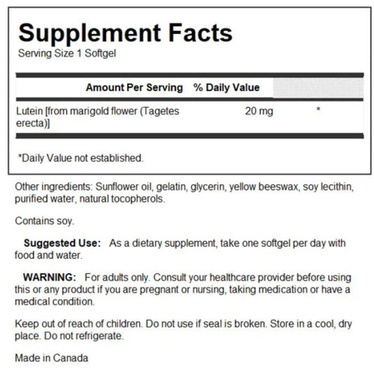 Suplemento Luteína 20 mg Swanson 60 Softgels