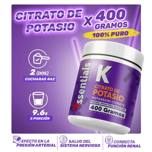 CITRATO DE POTASIO PURO 400 GRAMOS - ESSENTIALS