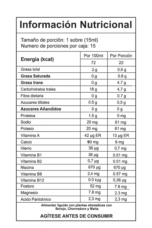 R-QMAZ – Concentrado de Frutas (Borojó, Chontaduro, Noni y Maca) 16 porciones de 10 mL
