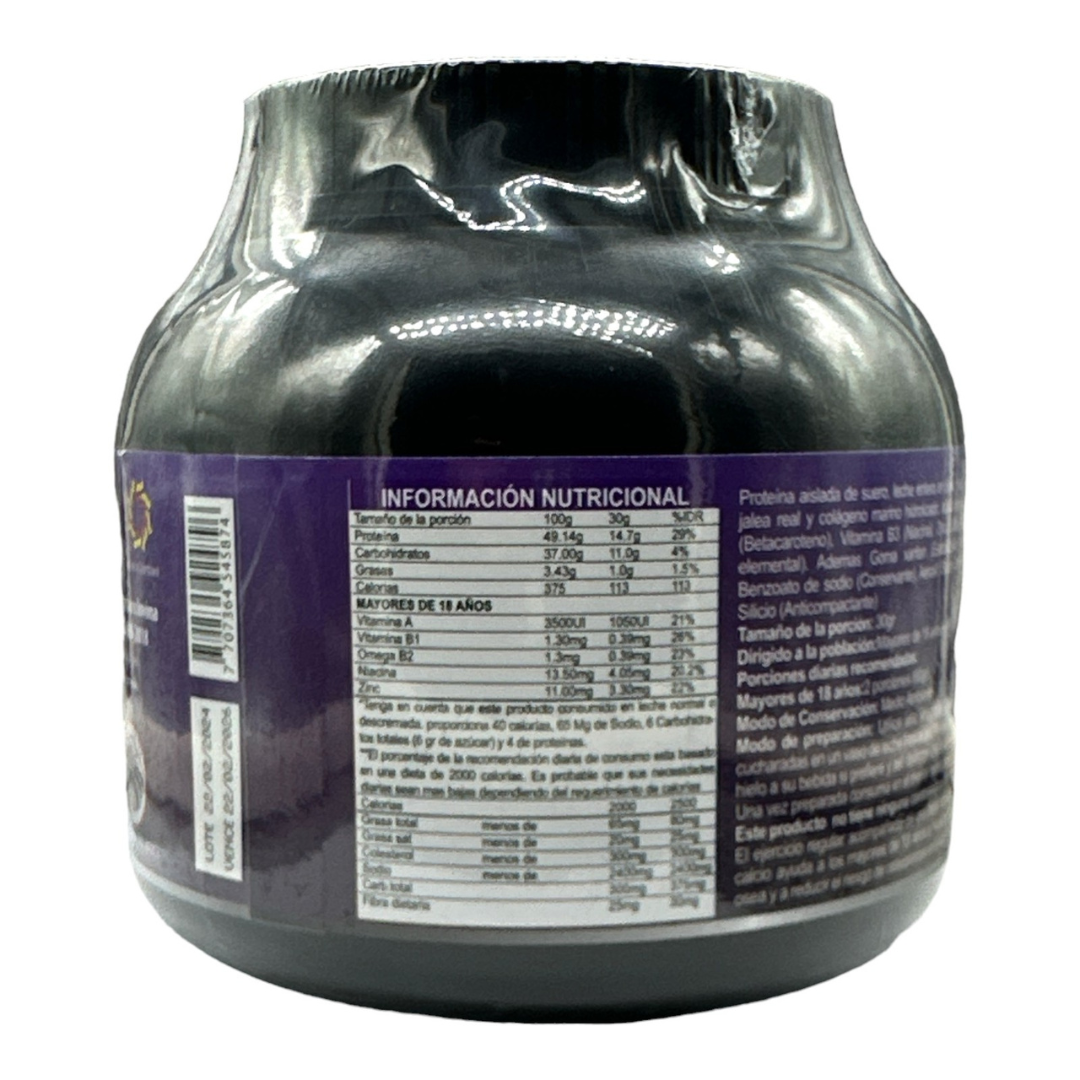 Modo de uso: Mezcle una media raza (cucharada medidora incluida en el envase) o 20g del producto en un base de agua y agite asta disolver el producto completamente